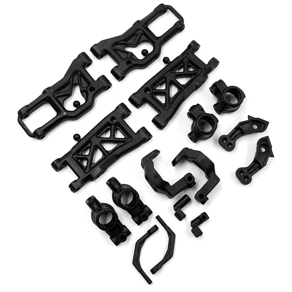 New and improved suspension arms. These will be direct upgrade on the Execute series, during testing it was found that these suspension pieces gave more corner speed! Version 2 introduces an inner hole for mounting your rear shocks onto for a even more upright shock angle.