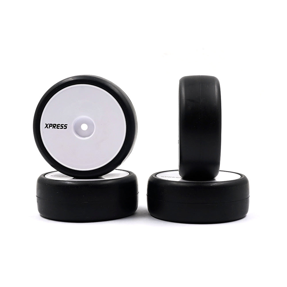 Redesigned compound of the Xpress controlled tire wheelset, easily distinguish from our previous compounds by the different orientated logo! Hardness of tire is also molded into the tire, easily distinguish from the different hardness wheelsets you may have.